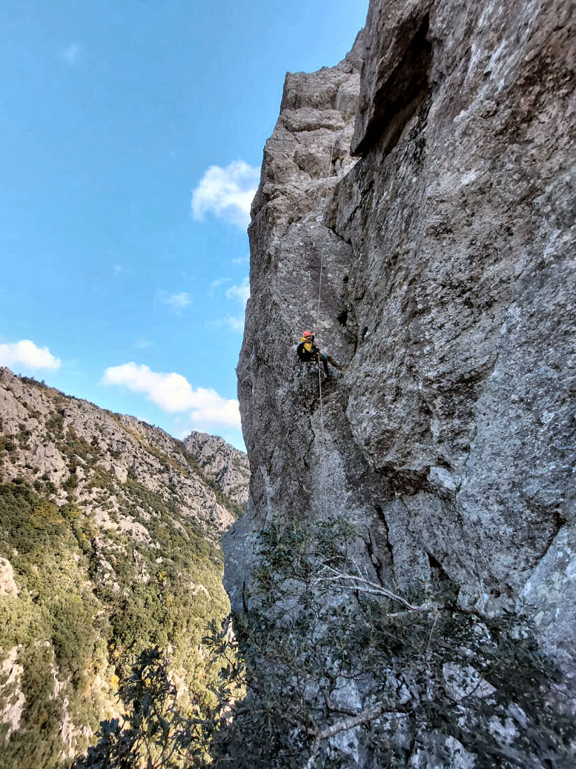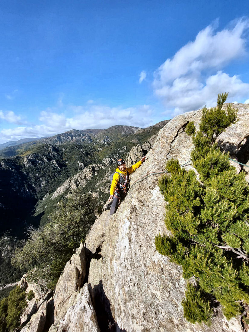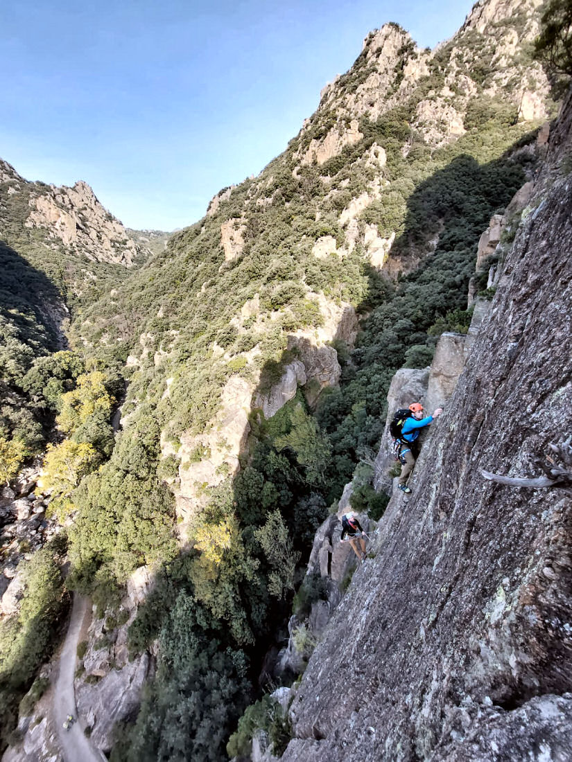 L’escalade guidée dans le massif du Caroux, au cœur des Gorges d’Héric, offre une expérience à la fois sauvage et authentique. Sous ma conduite, vous découvrirez un véritable terrain d’aventure, où les parois de gneiss granitoïde se dressent en piliers, en arêtes et en ressauts, dominant les vallons encaissés. En progressant sur les grandes voies du Caroux, on alterne entre passages d’escalade, arêtes et vires aériennes, offrant des panoramas grandioses sur les gorges et les crêtes environnantes. La roche, solide, rugueuse et bien sculptée, se prête à une escalade variée : fissures, dalles, dièdres et ressauts ensoleillés. Encadrée dans une ambiance conviviale et sécurisée, cette escalade dans le Caroux permet à chacun — débutant ou initié — de vivre une aventure de montagne complète, au cœur d’un des plus beaux massifs du sud de la France.