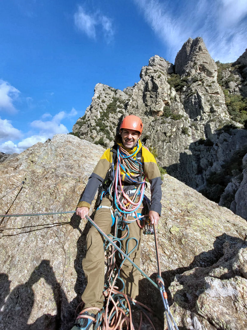 J’ai découvert l’escalade dès mon plus jeune âge avec mon père, dans le nord de l’Aveyron, au cœur des falaises des Gorges de la Truyère. C’est dans ce cadre sauvage et préservé que cette activité est devenue peu à peu une passion essentielle de ma vie, et il y a une vingtaine d’années, elle est devenue mon sport principal. Après avoir terminé mon cursus en ébénisterie et menuiserie, j’ai décidé de faire de cette passion mon métier en passant mon diplôme de Moniteur d’Escalade Diplômé d’État en Milieu Naturel, Spécialité Terrain d’Aventure.