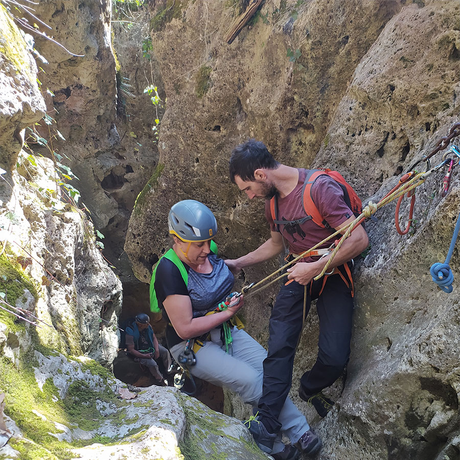 La rando-rappel ou rando verticale combine randonnée et techniques de rappels pour explorer des sites inaccessibles à pied. (canyons sec ou falaises ) Sur des parcours ombragés et rafraîchissants, vous évoluerez sur chemins, vires rocheuses et anciennes cascades, accompagnés par nos moniteurs.
