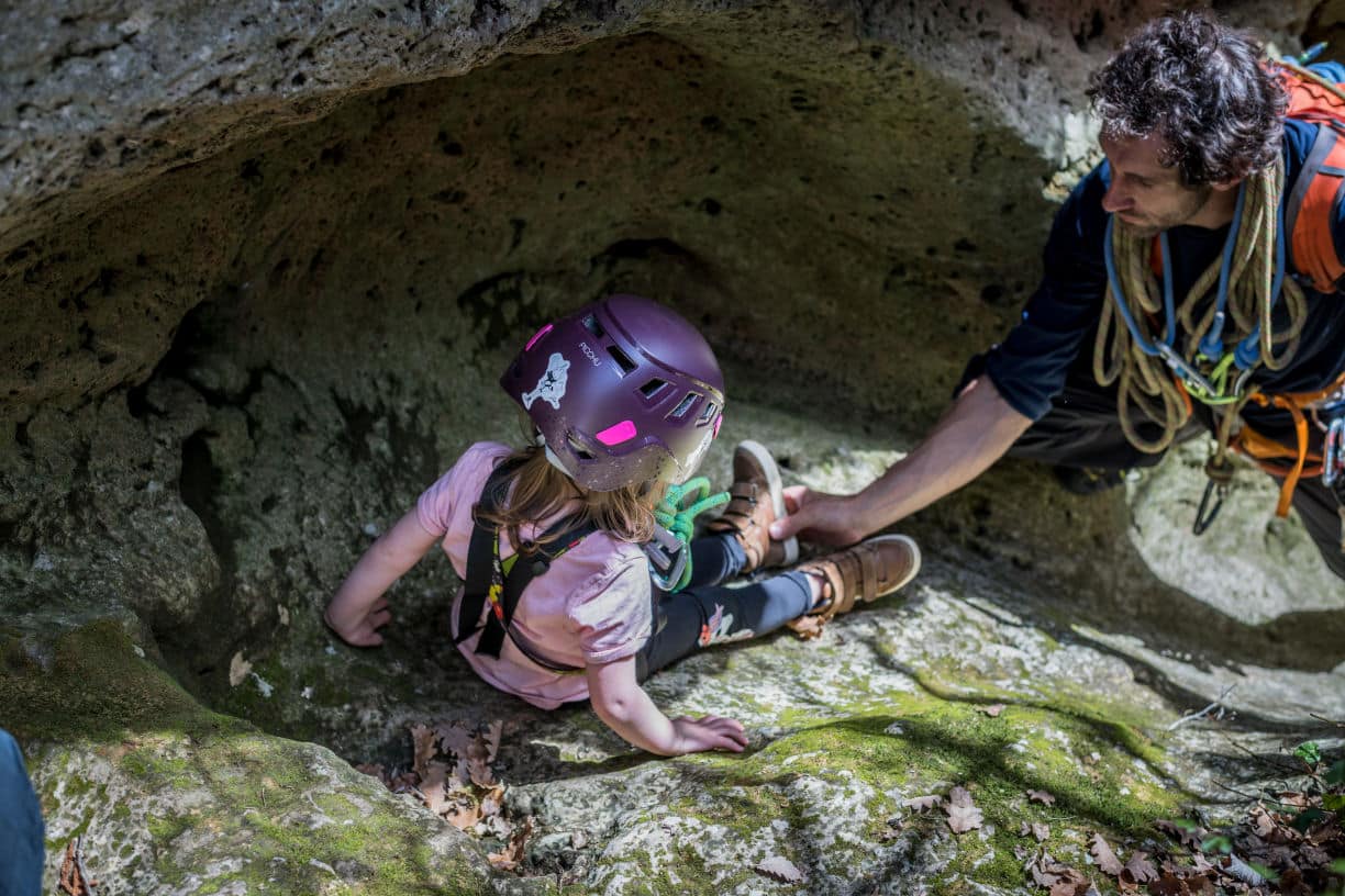 Particulièrement adapté aux enfants à partir de 5 ans, le canyon de Verrières propose 7 à 8 rappels, jusqu’à 8 mètres de hauteur, non obligatoires selon les conditions, avec mains courantes pour sécuriser la progression. Cette descente courte mais originale, semi-souterraine, à travers les formations calcaires appelées « tufs » (des roches formées par l’accumulation d’algues microscopiques), permet aux plus jeunes de découvrir la verticalité en toute confiance.