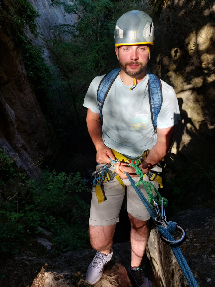 J’ai découvert l’escalade dès mon plus jeune âge avec mon père, dans le nord de l’Aveyron, au cœur des falaises des Gorges de la Truyère. C’est dans ce cadre sauvage et préservé que cette activité est devenue peu à peu une passion essentielle de ma vie, et il y a une vingtaine d’années, elle est devenue mon sport principal. Après avoir terminé mon cursus en ébénisterie et menuiserie, j’ai décidé de faire de cette passion mon métier en passant mon diplôme de Moniteur d’Escalade Diplômé d’État en Milieu Naturel, Spécialité Terrain d’Aventure.